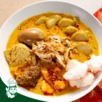 Nasi Gurih, Ayam Suir, Dendeng Cabai Hijau, Sambal Kentang Ati Ampela atau Teri, Sambal Tempe Kacang Panjang, Telur Pindang, Kerupuk & Sambal.