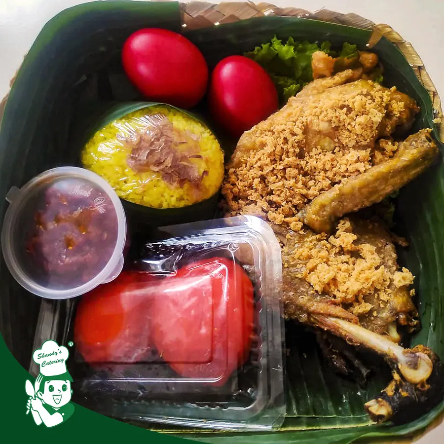 Paket Tumpeng Mini ala Shandy's Catering adalah untuk porsi 1 pax dan sudah termasuk beraneka ragam lauk pendamping.